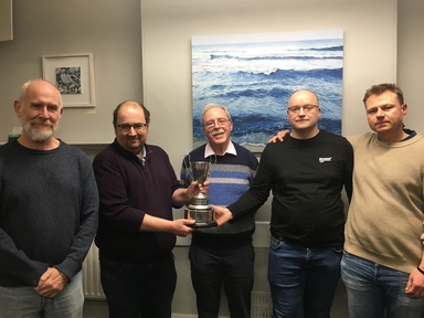 We had a great entry of 22 teams for the O'Kennedy Cup open competition on Sunday 11 January. It was a very enjoyable day, capably overseen by TD John Royds. Congratulations to all the prize winners, pictured above with Club President John Biggar: