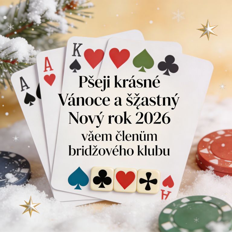 Media generated: 'Opravené novoroční přání PF 2026 pro bridžový klub se správným českým textem.'
