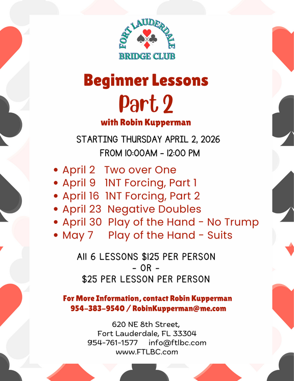 Open Pairs12:30pm Monday - Friday1:00pm Saturday1:00pm Sunday