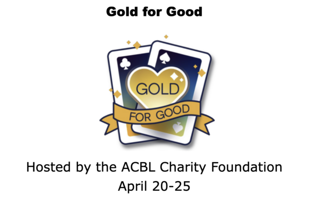April is ACBL Charity Month and the "Gold for Good" games run from April 20th - 25th. The deadline to register is April 19th by 11:59 pm.