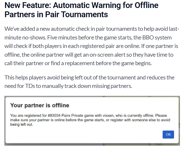 We are now about to implement a change to the way in which Robots are used in these Human/Robot partnerships. Specifically, we will implement a change to our competitions which will require the human partner to play all hands that are initially contracted by the Robot. In essence this means that where a Robot is initially deemed to be declarer the human will TEMPORARILY switch place with the Robot partner and will then play the hand. Upon completion of the hand the human and Robot will be re-seated in their original positions for the start of the next hand.