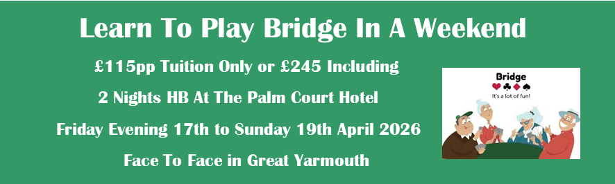 For details of the Festival of Bridge Weekend in Great Yarmouth being run by John & Sarah Barker please click on the following link - Festival of Bridge Weekend