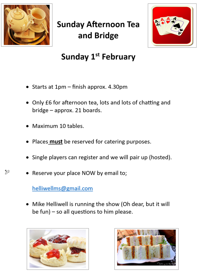 | Sunday Afternoon Tea and Bridge |
