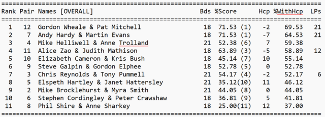 Congratulations to Pat & Gordon who won the NGS Adjusted pairs