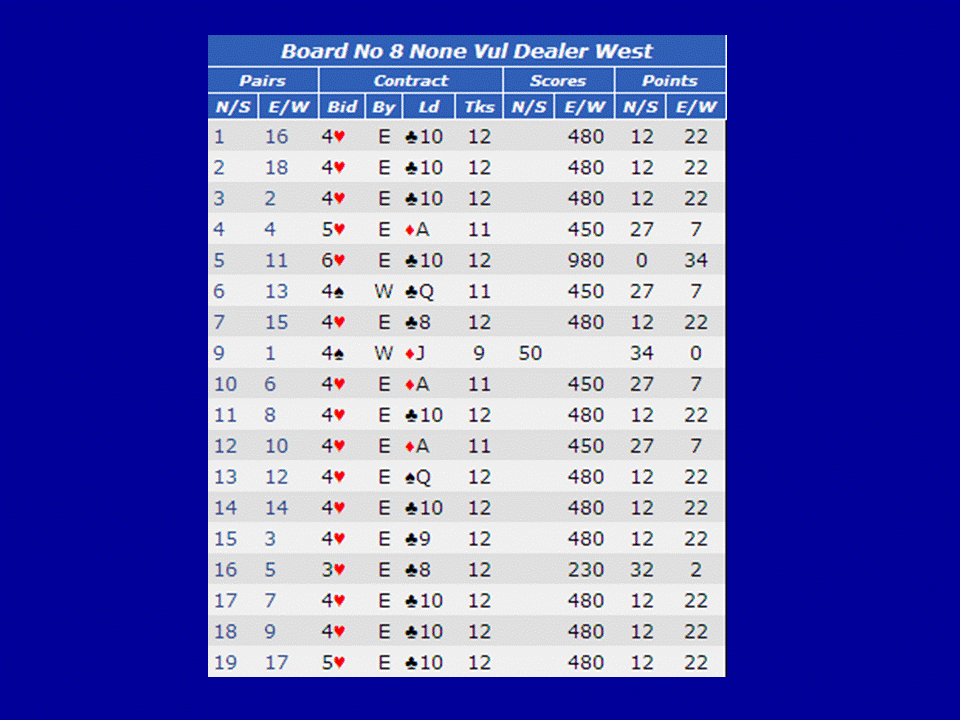 Matchpoints where taking overtricks is important. You can see how taking 13 tricks in 4 would have scored from the traveller.