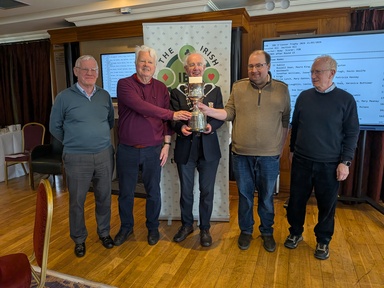 The Masters competition for the Burke trophy saw last year's holders emerge victorious to retain their title. Finding themselves well down the field after the first session, the team of Paul Delaney, Tomas Roche, Martin Brady and David Dunne made strong and steady progress over the remainder of the competition, hitting the front only as the last round commenced to show remarkable timing. Commiserations to teams COSTELLO (2nd) and O'BRIEN (3rd), who fought valiantly all the way. Results can be found here.