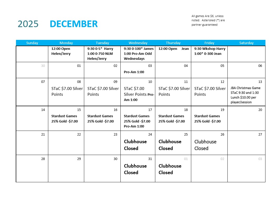 JBA Clubhouse 12:00 STaC- Silver points $7.00 |