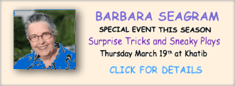 Dr. Reza Khatib remains a dedicated club player, though mostly on-line these days. He is the bridge center's founder and is honored as Lifelong Chairman of the Board and voting board member. In launching the Bridge Center, he brought sectional tournament play to Martin County and has worked to promote bridge among younger players. He serves as the Bridge Center’s landlord as well.