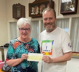 Phil O'Reilly, on behalf of Marble City Summer bridge, was delighted to present donations to two charities. Many thanks to all the members and visitors who played during the summer and helped contribute.
