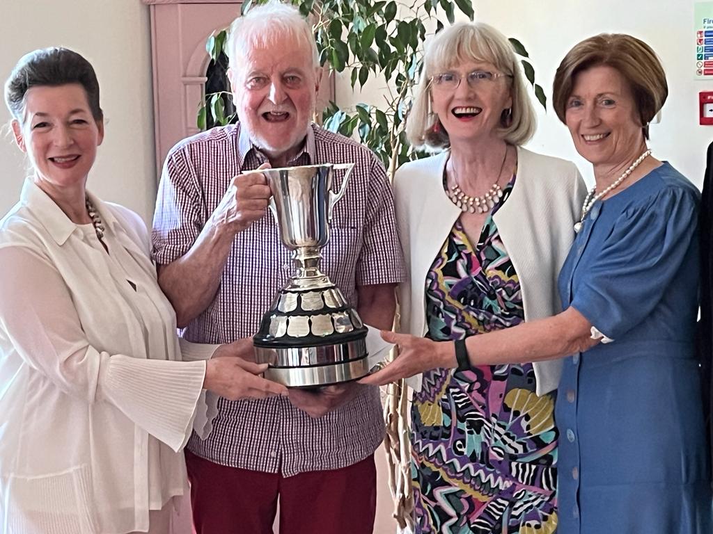 Club President Joe presenting the Smyth Cup to Lorraine & Sinead