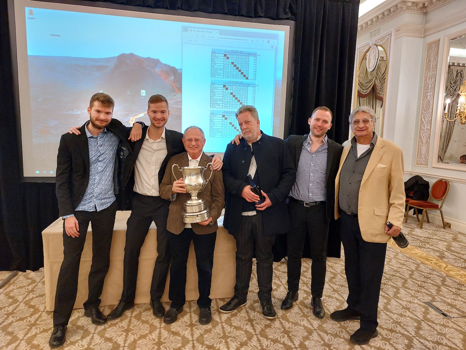 Congratulations to the team of Chantal Girardin, Ken Barnett, Paul Lamford and Stefanie Rohan who won the Swiss Teams at the 2023 London Congress. They were 5 VPs ahead of 2nd placed team of Stefano Tommasini, Rodrigo Rosa, Diana Nettleton and Tom Rainforth. In 3rd, another 5 VPs behind, were Ben Payne, Leila Amoura, Duncan Thomas and James Thrower. All pretty close - well done everyone!