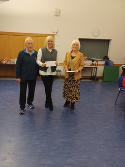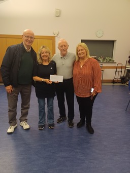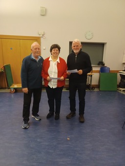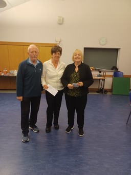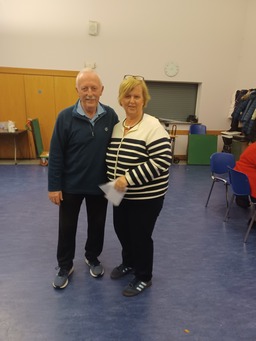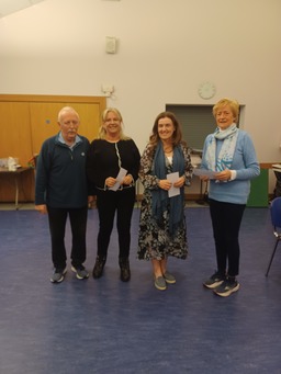 | Winners of Novice Section of Cunningham Leagues.Congratulations to Catherine,Niall,Breda,Noreen,Eamon and Grace(Missing from picture)Pictured here with Kathleen McCorry Cunninghams Rep |
