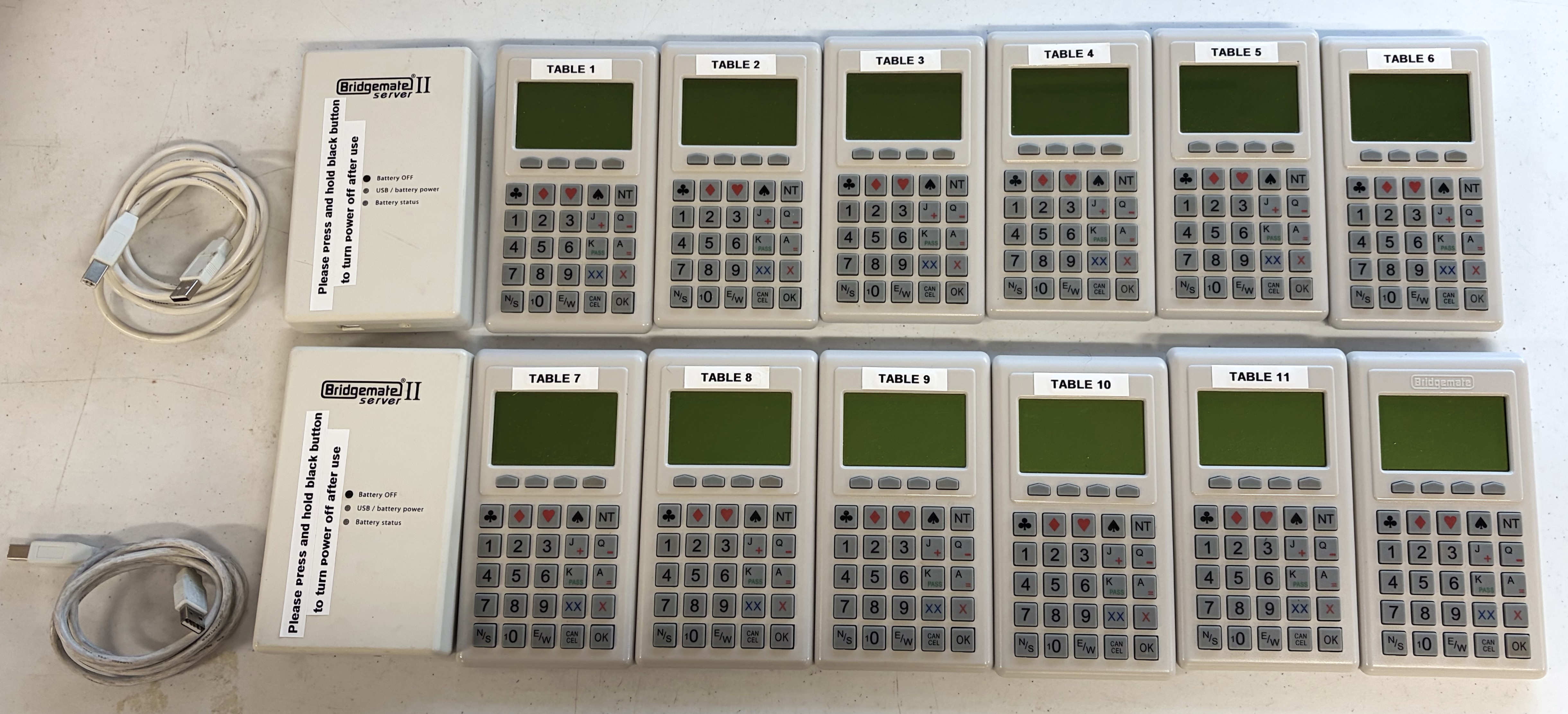 Macedon Ranges Bridge Club is selling 12 x Bridgemate IIs + 2 x Bridgemate II servers (with connector cords) + Bridgemate II suitcase