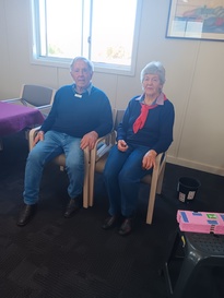 Daphne Reddington and President Cherie Edwards celebrate Daphne's 98th birthday with members, Mudgee Bridge Club, July 2025