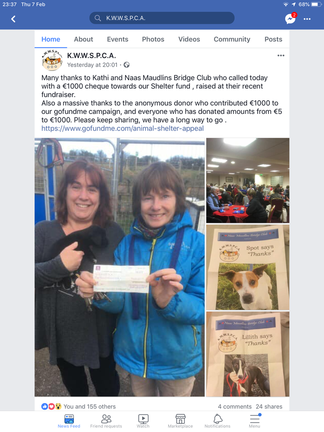 With thanks to the generosity of our Members at our recent charity night the President has made a donation of €800 to Ash Animal Rescue in Rathangan, Co Wicklow.