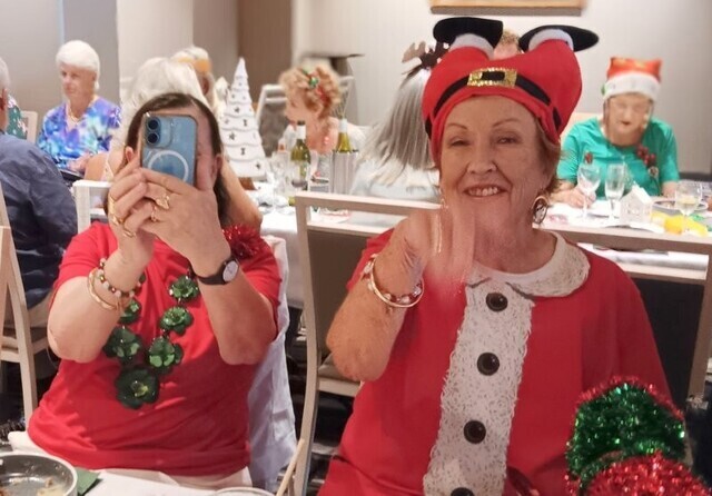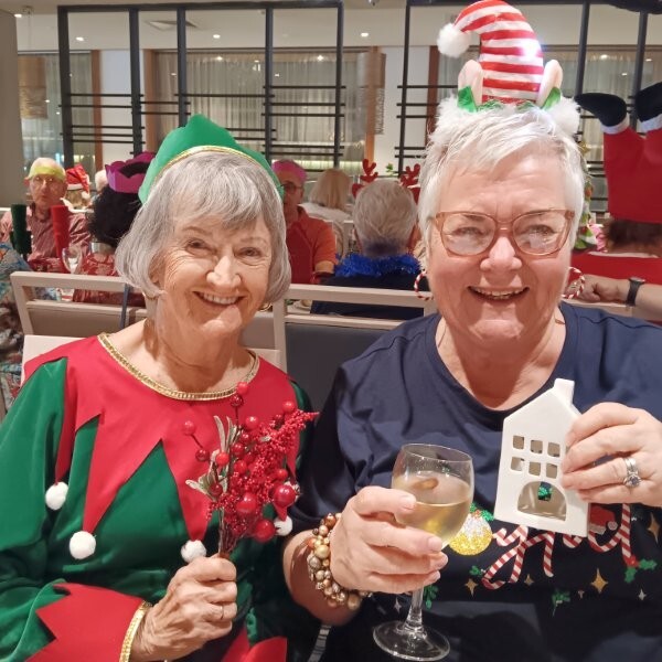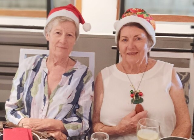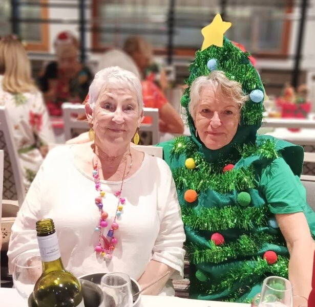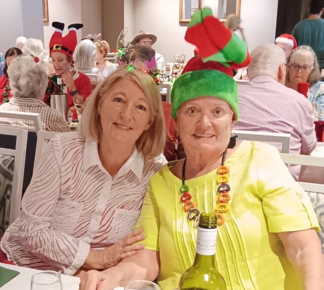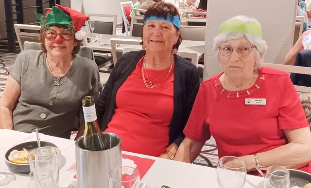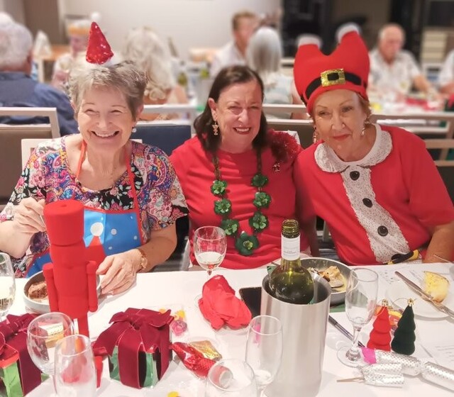 After bridge we headed off to the beautifully decorated dining area (thanks to Trish Burningham & Marlienne Weir), along with a few extra guests (70 in all) and of course, the inevitable glass of bubbly.