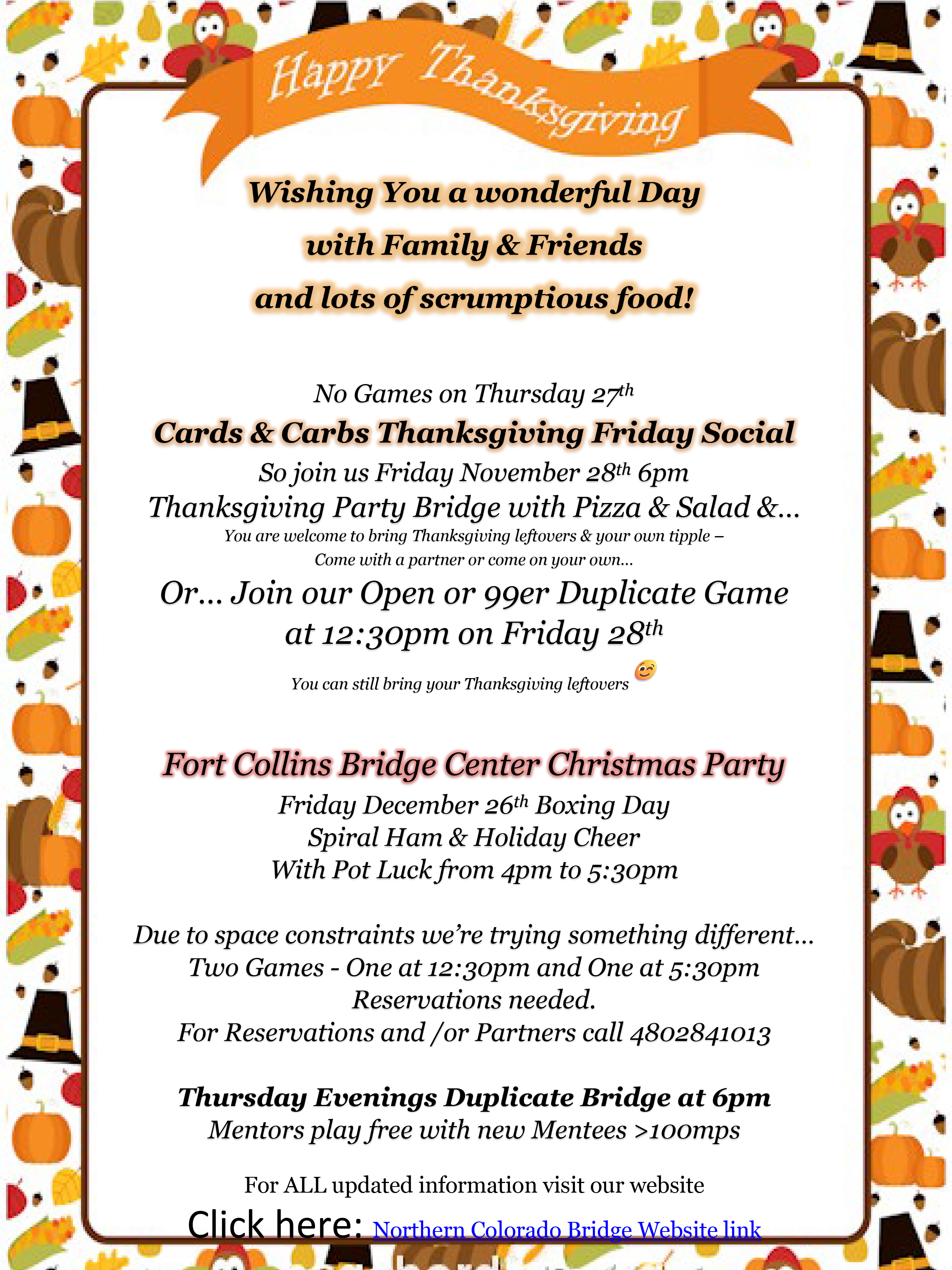Fort Collins Bridge Center 12:30 pm Director: Diane Adams |