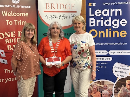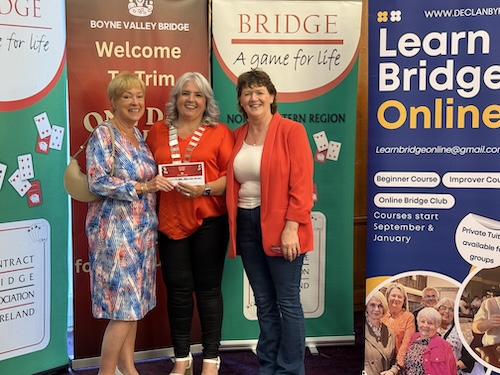 Declan, Nicola, and Melissa wish to express their sincere gratitude to CBAI President Catherine Byrne for the incredible opportunity to compete against some of Ireland’s best bridge teams.