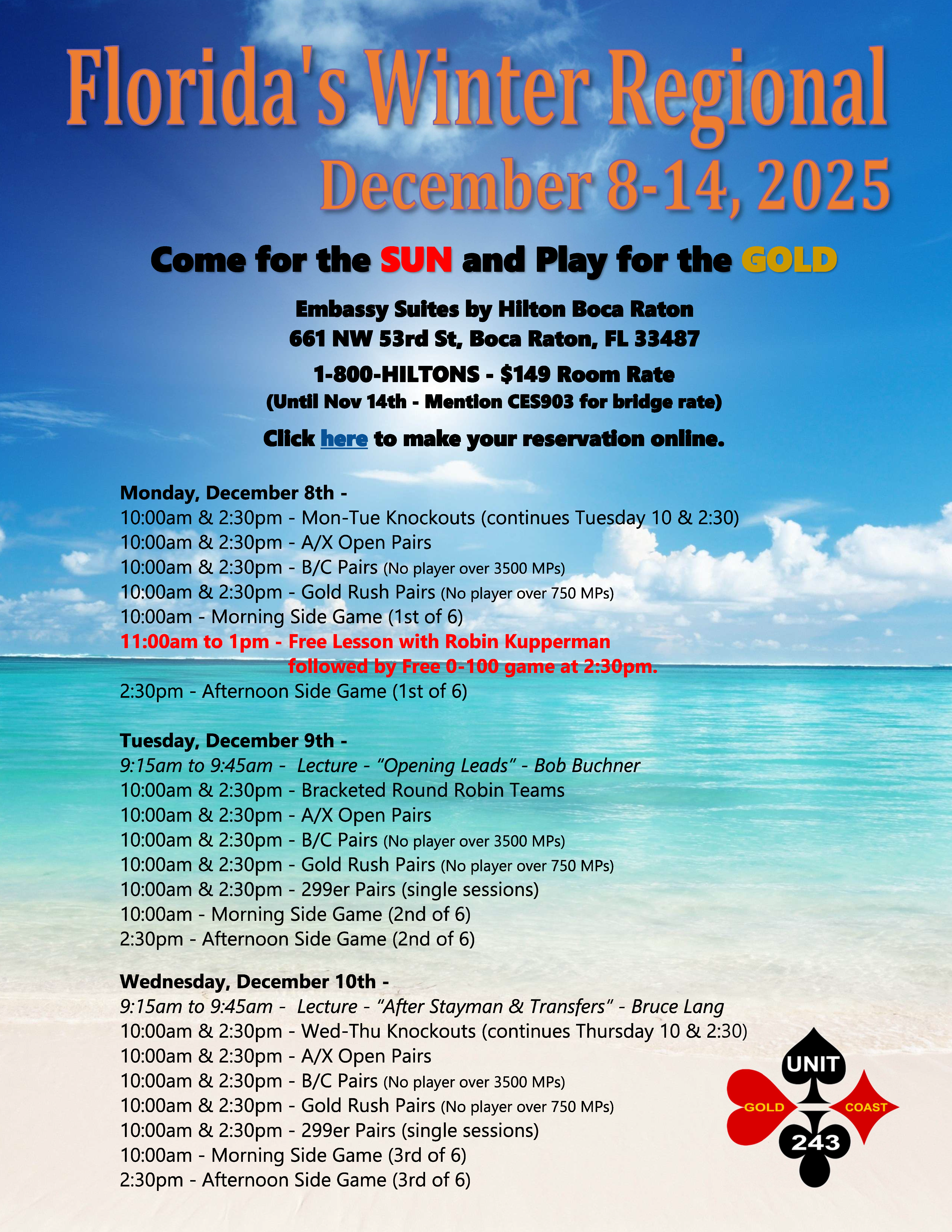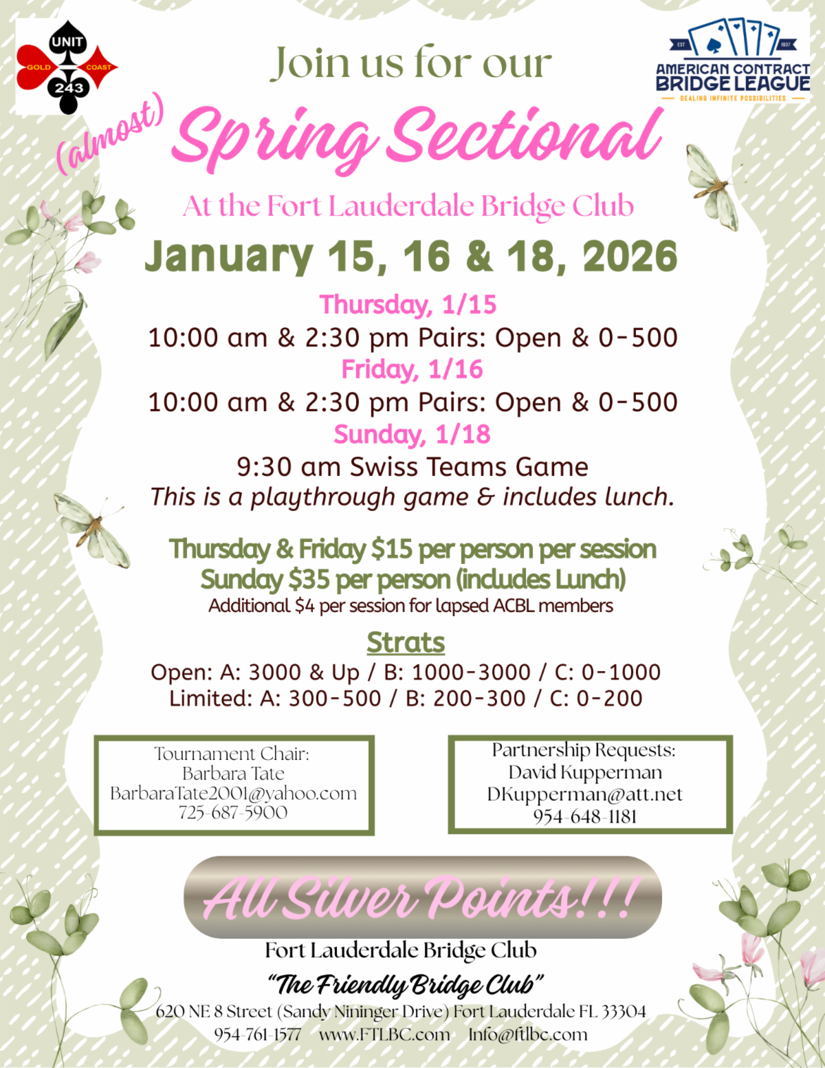 We offer a more relaxed game and perfect avenue for new players to break into duplicate bridge.