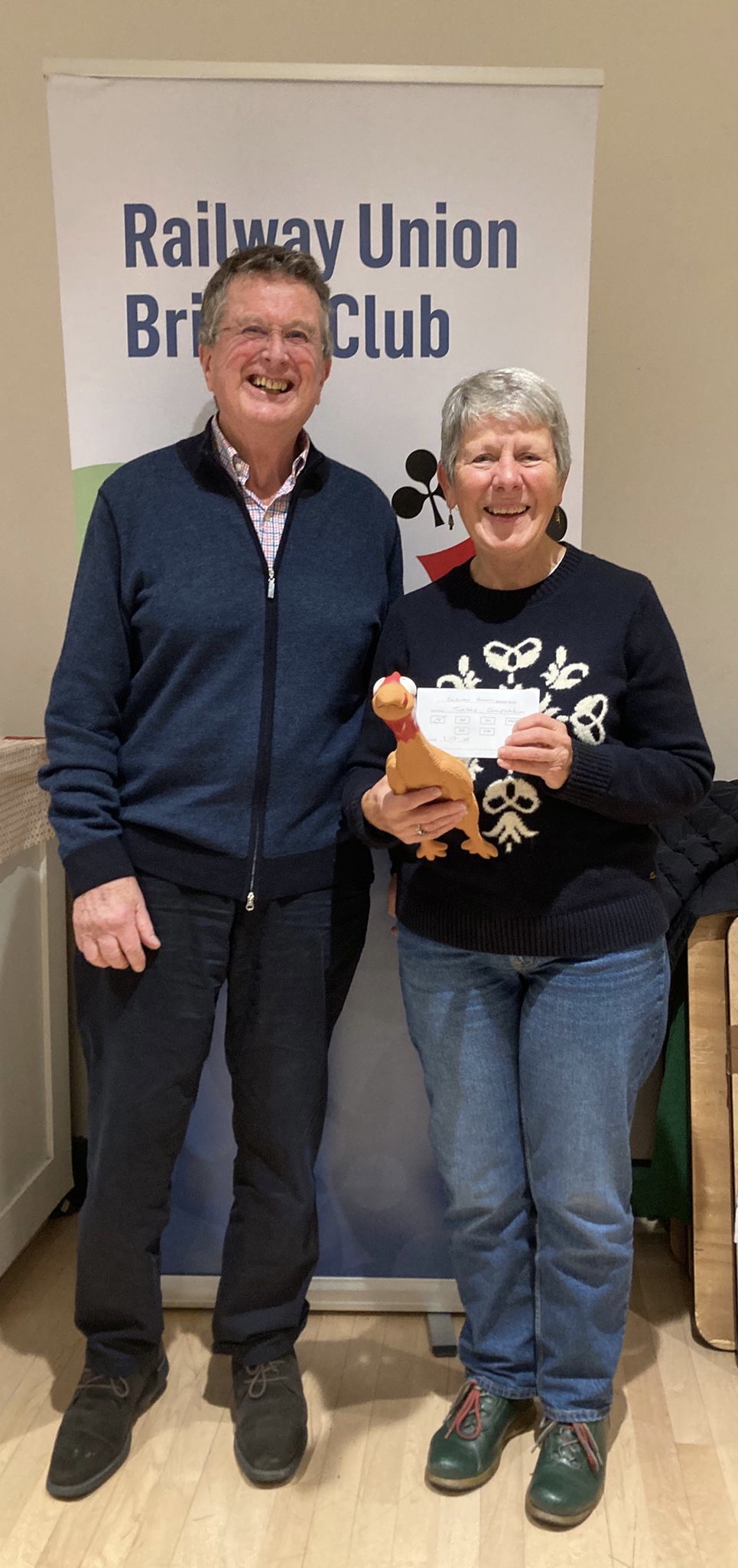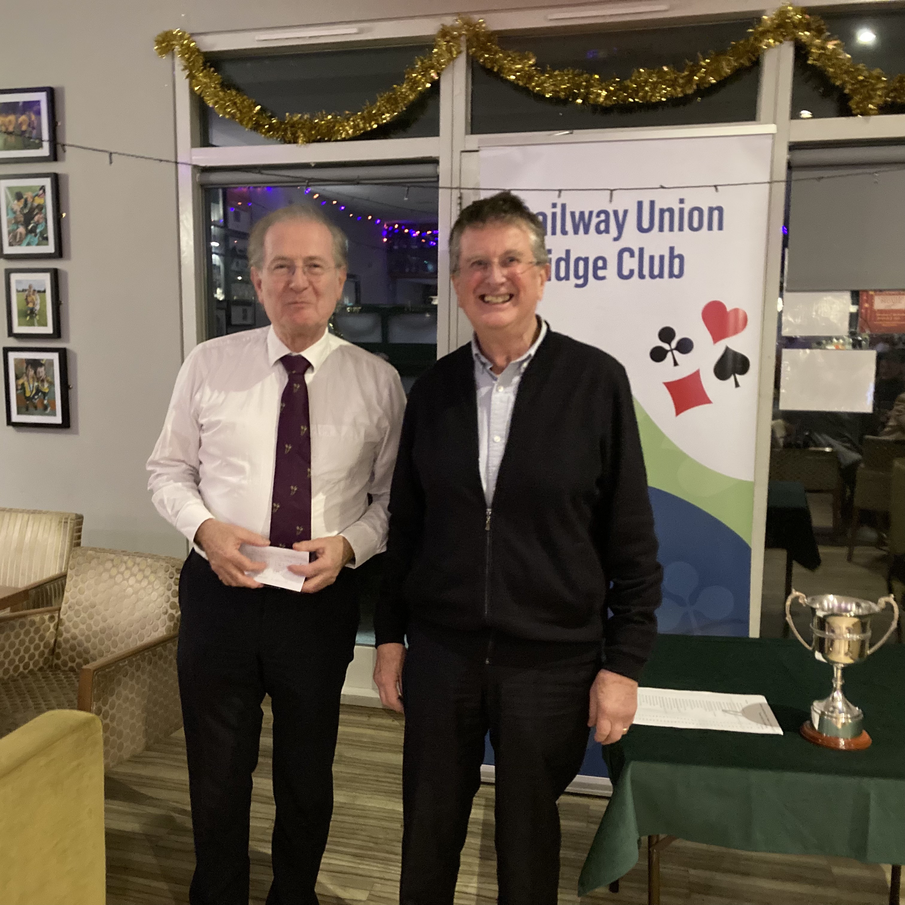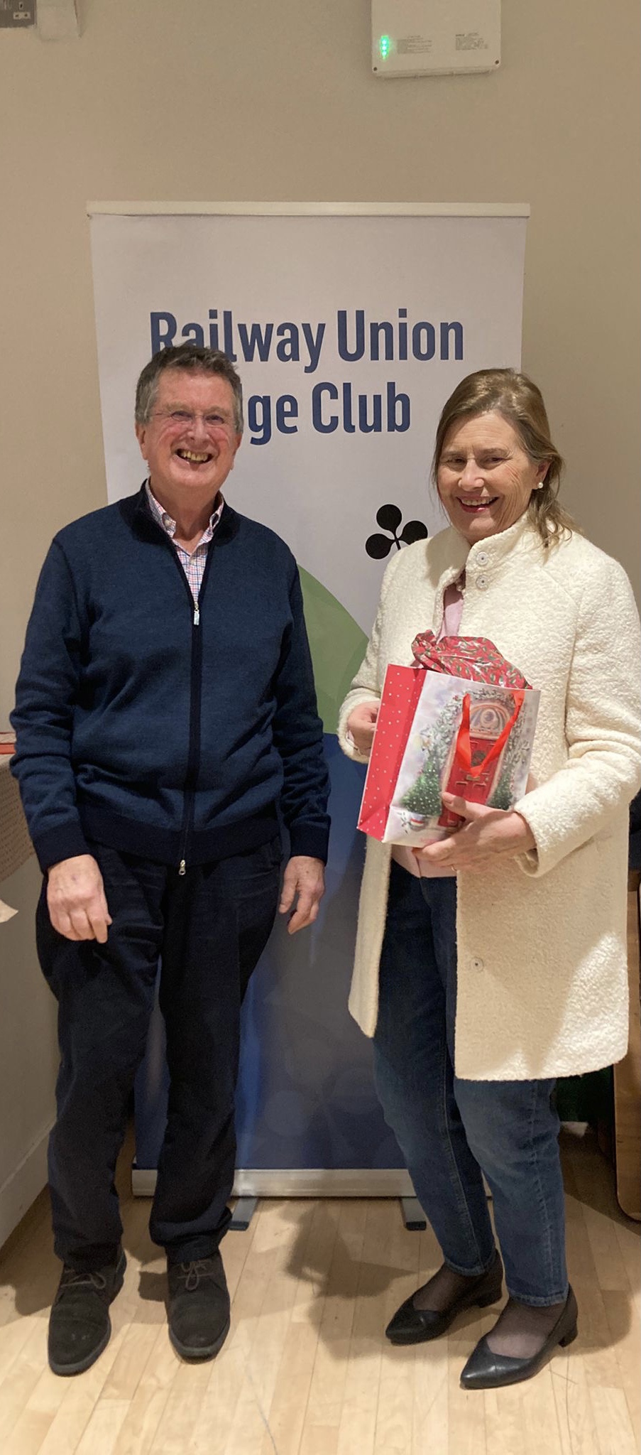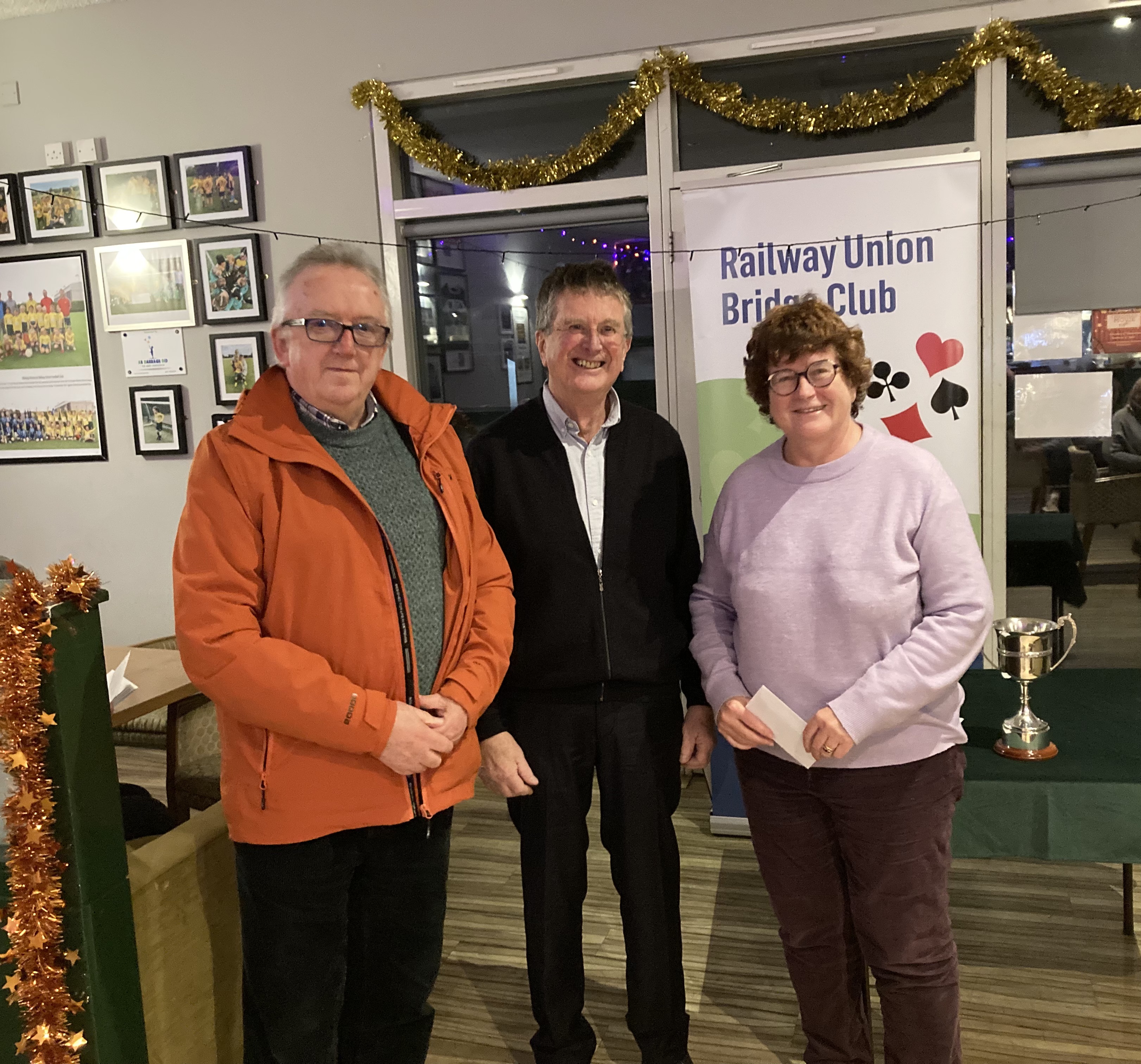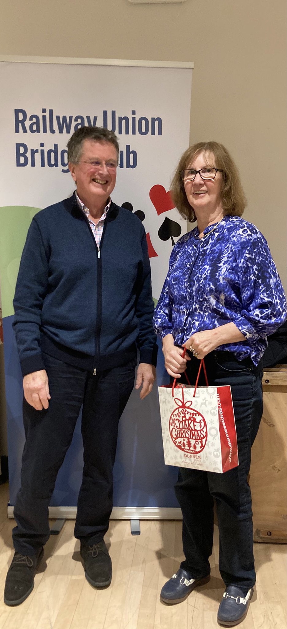 The Martin Cowley Cup Competition took place over two weeks, culminating in prizegiving in the bar on Monday 24th November. Some 34 pairs competed for the Cup, with Jennifer Nolan and Graeme Williams ultimately emerging victorious.
