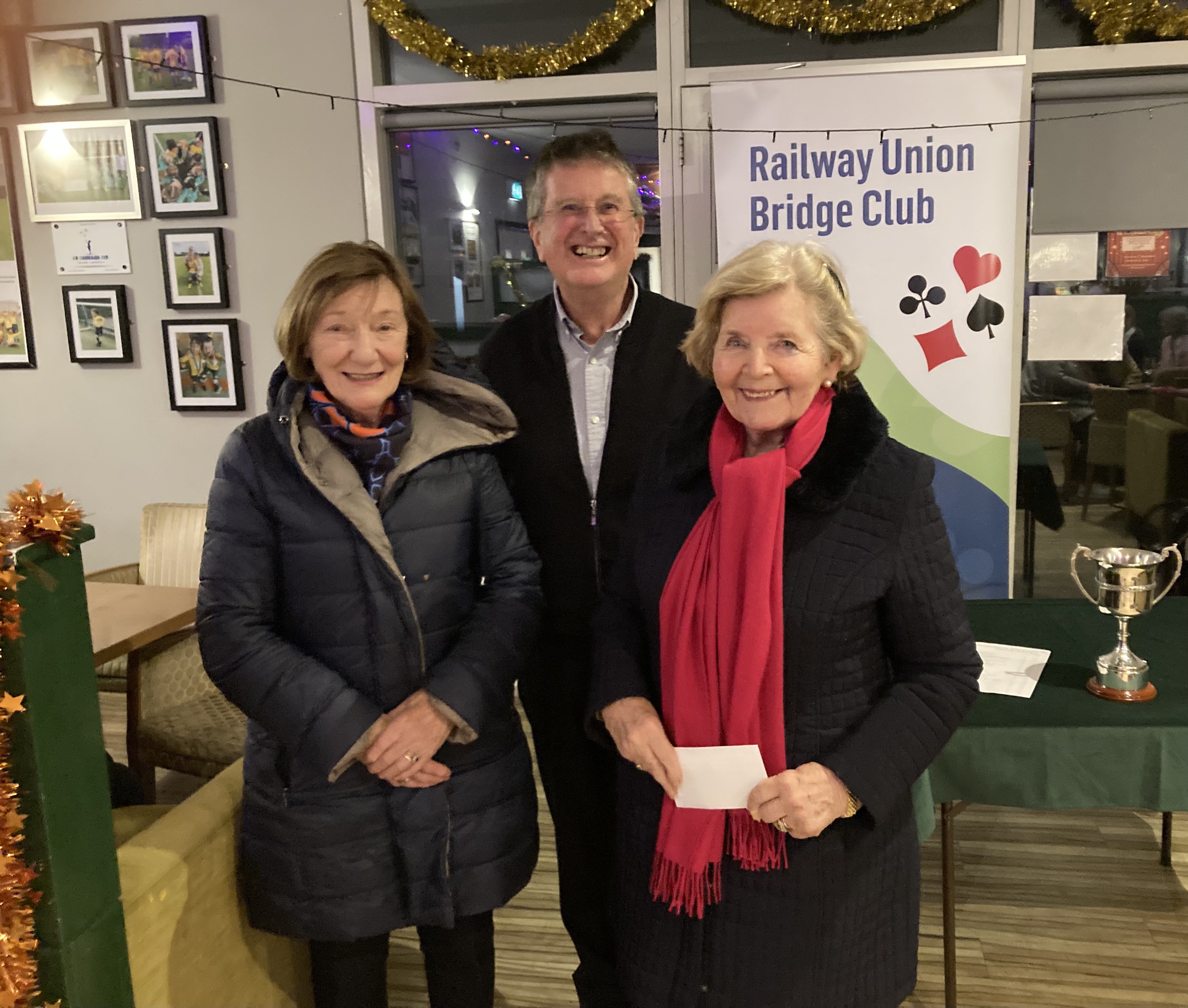 The inaugural Railway Union Handicap Cup took place on Monday 6th October 2025. 34 pairs competed for the magnificent cup presented by Mervyn, on behalf of the Whaley family. The winners were Mary Masterson and Marian Flynn with Walter McNicholas and Tony Hayes coming second.