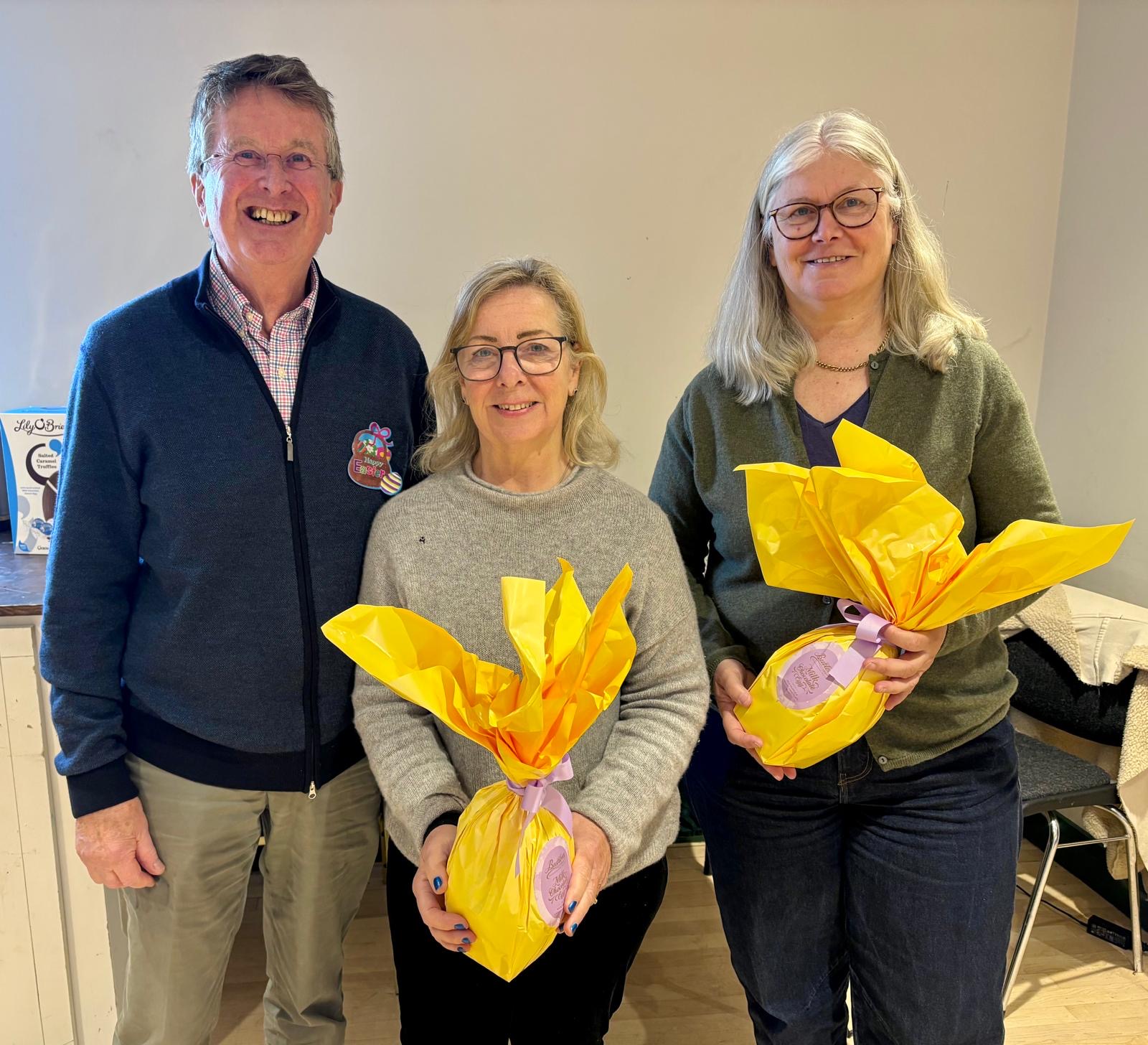 Recognising the invaluable contribution they make to the club’s Thursday mornings, Owen presented Easter eggs to Caroline Crowley and Fiona O’Gorman.