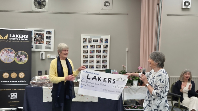 Diane Cahill of Lakers told us of the latest news from Lakers including the new sports hall - she thanked Maeve & Rathdown Bridge Club for choosing Lakers