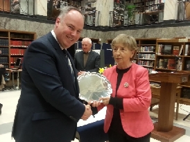 Anne-Marie Feeney presenting the President's Prize to the 2016 winner, Betty Cody who won with Michael Fitzgibbon