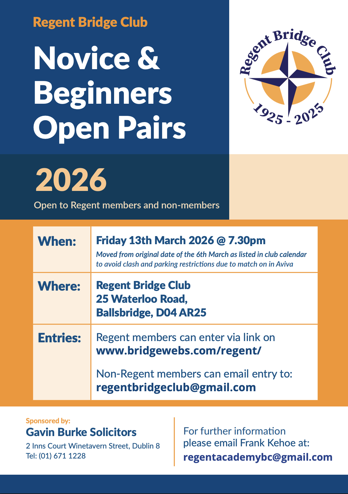 Hugh MacDermott Hon. Secretary RegentBridgeClub@gmail.com