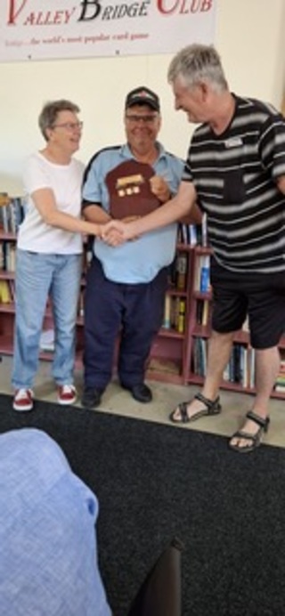 Alison Sandwith and Martin Sims headed the home team, while Martin picked up the Bega Bridge Club Person of the Year trophy.