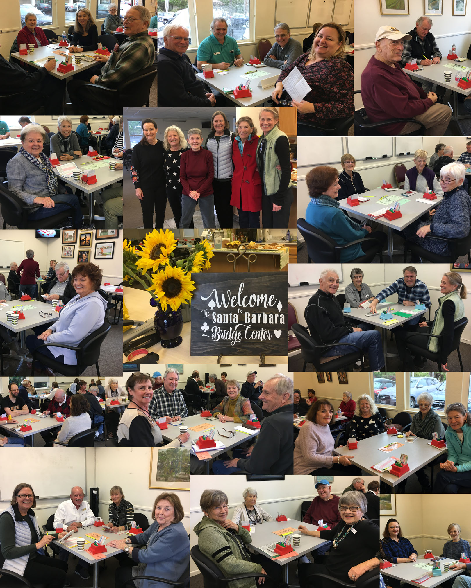 Our August 12-14 Santa Barbara Sectional welcomed players from throughout California. They came from nearby communities, and from Los Angeles, Fresno, Bakersfield and Santa Cruz. There were 70 tables of Open players on Friday and Saturday and 60 tables of 499ers on Friday and Saturday. The Sunday Swiss game at the club had 17 tables for the all-day event. All three days ran smoothly thanks to our director in charge, Scott Campbell, and the great planning and organization of tournament chair, Annetta Patrick.
