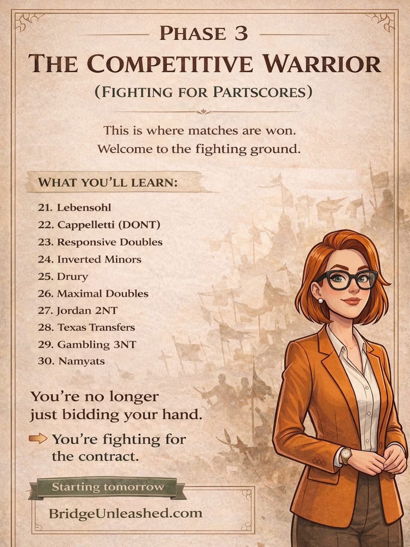 Please follow Bridge Unleashed on FB. Her content is unbelievably good. It is available on FB and by a free newsletter directly from her site