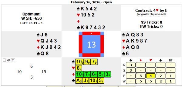 January 2026, A new year with new beginnings. We logged 39 tables and 39 individual players during the cold cold January. Jean and Barb O. led the charge playing eight times each.