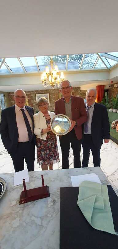 A most enjoyable end of season night was held in Tankardstown House on Monday April 28th. A beautiful meal was enjoyed by all and this was followed by a game of bridge. The Christine O'Gorman Salver was presented by her son Timmy. The very proud winners were Eithne and Donal O'Boyle. Runners up were Ann and Kevin Moran. Dinah Matthews and Susan Faulkner were third.