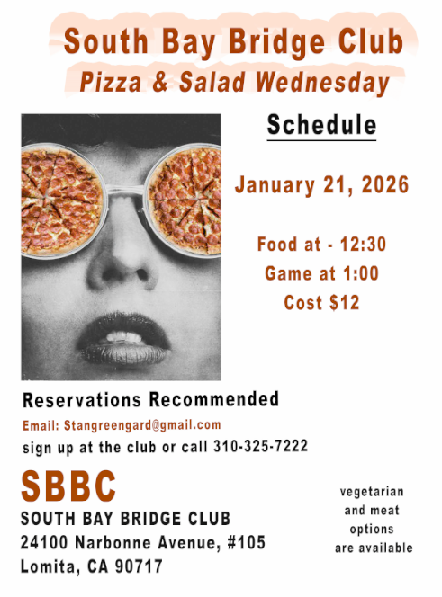 As before, the class will start after the morning Thursday game and will include playing hands after a brief intro to the topic(s) of the day. Begin about 2:15 for about 2 hours ending by 4:30.