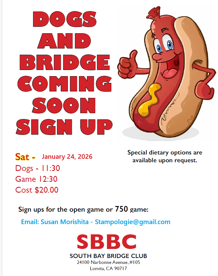 The South Bay Bridge Club is pleased to announce: