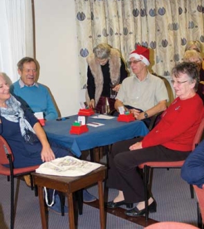 Other parties were the Wednesday afternoon party on the 12th, Thursday morning lessons on the 13th and the Friday evening party on the 14th. The Wednesday players produced a great spread for the occasion and wished Malcolm bon voyage to his new home in Yorkshire. Robin's lesson group on the 13th were a full 5 tables, played a movement with specially selected hands to reflect the lessons covered over the term, pupils laid on some lovely "eats" and a good time was had by all. On the 14th David organised a fun teams event with 9 teams for experienced masters, regular Friday players and new players moving up from the classes to a club session for the first time.