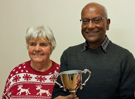 The Christmas Party was enjoyed by all and included a new competition played with random, mostly mixed, partnerships playing for the Christmas Trophy - won by Dorothy & Sekhar.