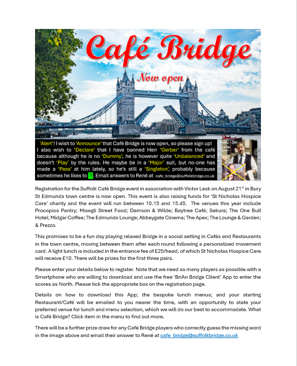 Pictured above are the winners at the annual Suffolk golf-bridge day together with Nick Farr, the county chairman. Except the picture at Newton Green golf club does really tell the story…