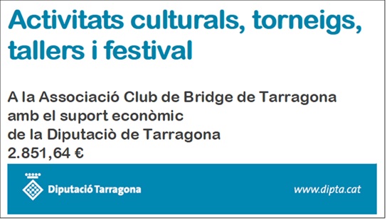 - CURS D'INICIACIÓ AL BRIDGE: De l'1 de febrer al 30 d'abril del 2025. Col·laboració amb Institut Municipal D’Educació De Tarragona (IMET).