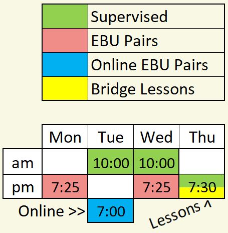 Bridge Lessons started 25th September, Thursdays 7:30pm - 9:30pm