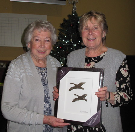 President Theresa Payne presenting John McInerney with Honorary Life Membership of Trim Bridge Club in appreciation for his decades of work for the club