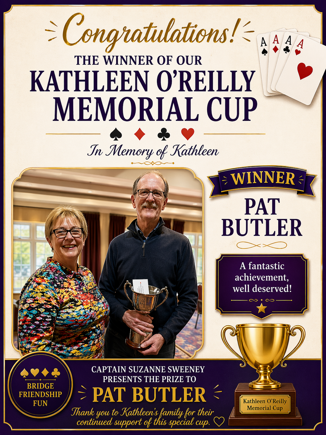 Well done to the four of you –great result and a proud day for Trim Castle Bridge Club