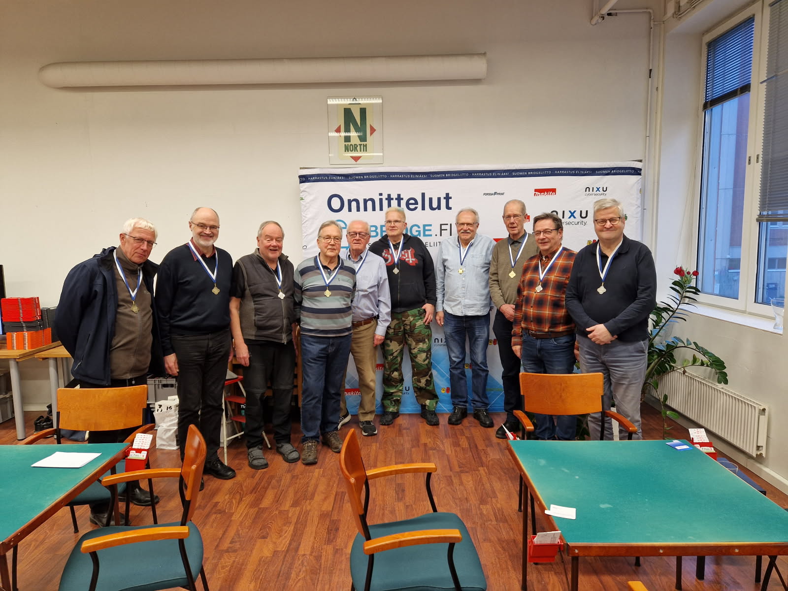 Seniorien maajoukkuekarsinta pelattiin viikonvaihteessa 14-15 joulukuuta Bridge Areenalla. Voittajaksi selviytyi 'Poismenon vaari', jossa pelasivat Osmo Parviainen (c), Lasse Utter, Olli Puurtinen, Juuso Leikola, Matti Sihvola ja Seppo Castren. Haastajana oli Cassini, jossa pelasivat Erkki Juuri-Ojan johdolla Väinö Kelhä, Kalevi Paavola, Pirjo Juuri-Oja, Tuula Honkavuori ja Raimo Honkavuori. 88 jaon karsinnassa voitto tuli impein 172-132. Voittajat pääsevät tosi toimiin ensi kesänä Kroatian Opatijassa järjestettävissä EM-kisoissa.