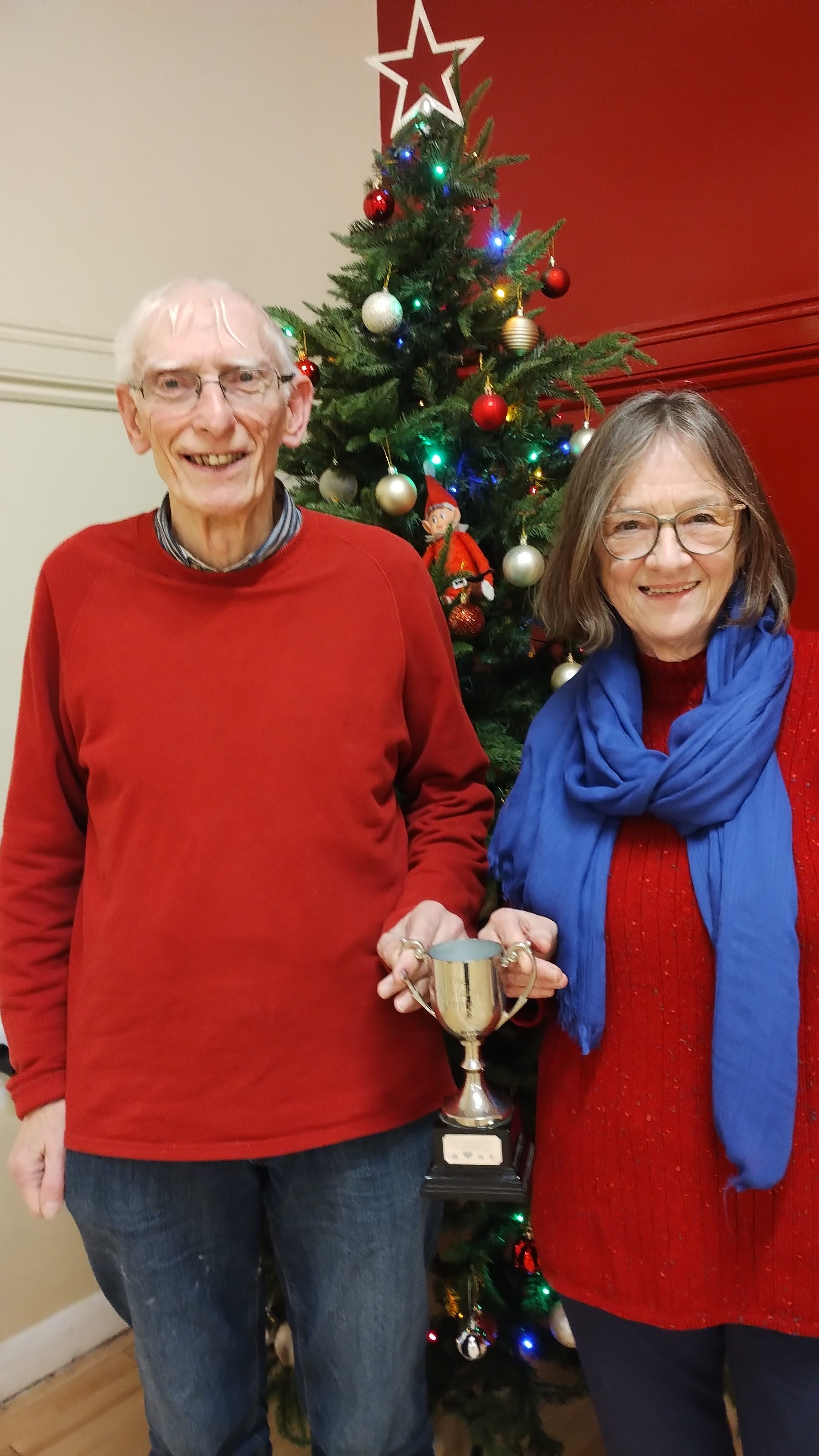 Congratulations to Anne Elliot and Ian Topham who won the Val Malone Cup for the most improved pair. This was presented at our Christmas drive.